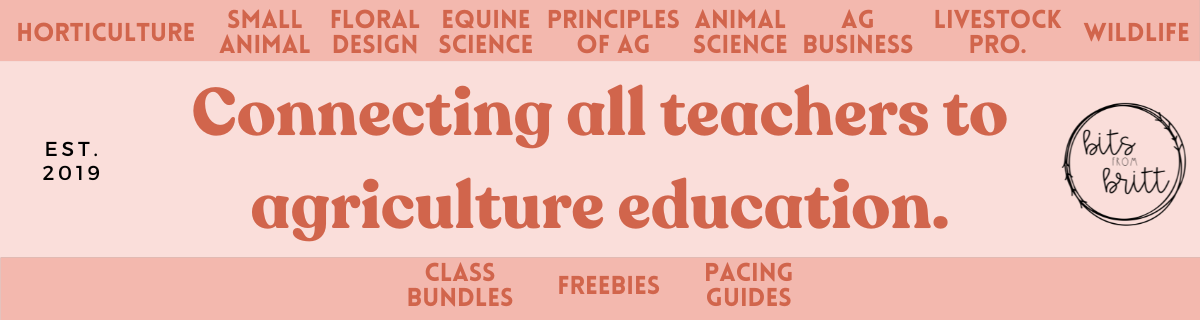 Since 2018 I have been creating agriculture education resources for my students and other teachers through other platforms. Here you will find all of the ag ed resources you've come to love at an even more affordable rate.